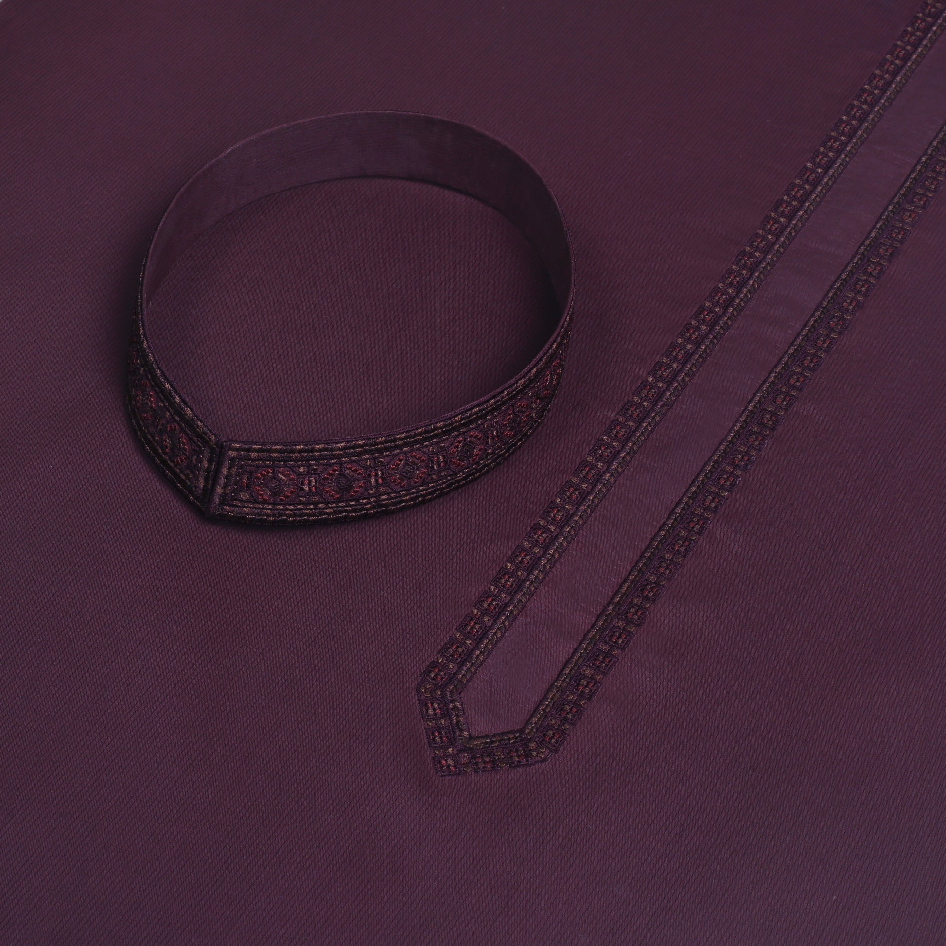Product Category: TAQWAA’s men’s unstitched embroidered kurta fabric with a separate classic white shalwar. The kurta features intricate embroidery detailing with TAQWAA’s signature design pattern.