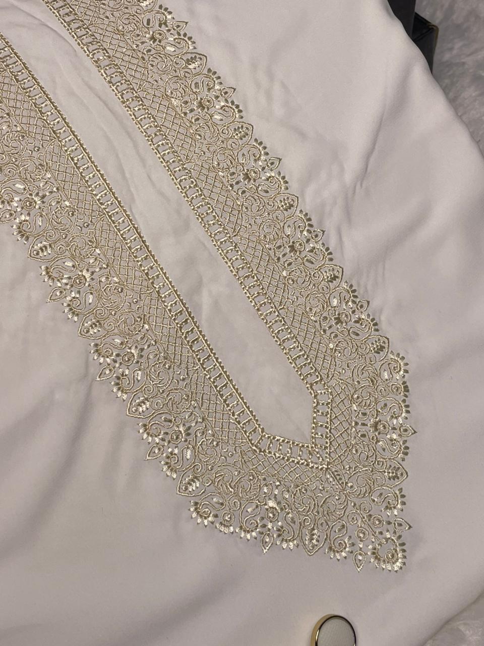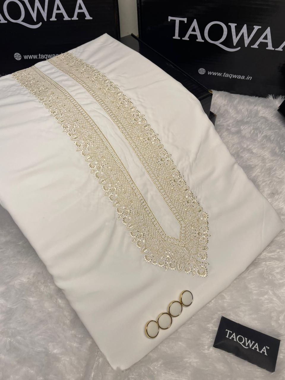 Men Habibi Embroidered – Wash & Wear Boski – Unstitched Fabric – White