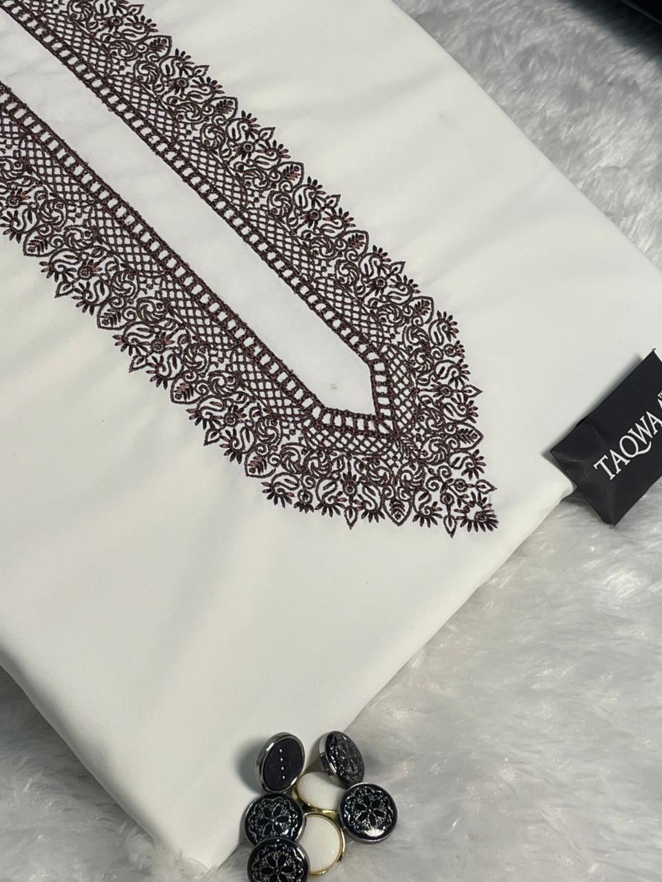 Men Habibi Embroidered – Wash & Wear Boski – Unstitched Fabric – White