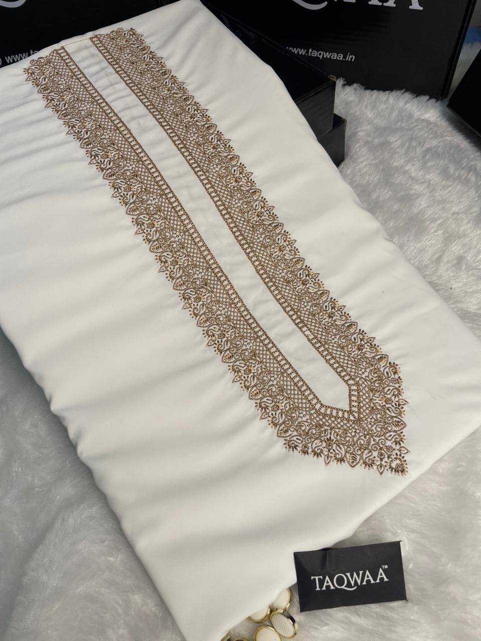 Men Habibi Embroidered – Wash & Wear Boski – Unstitched Fabric – White