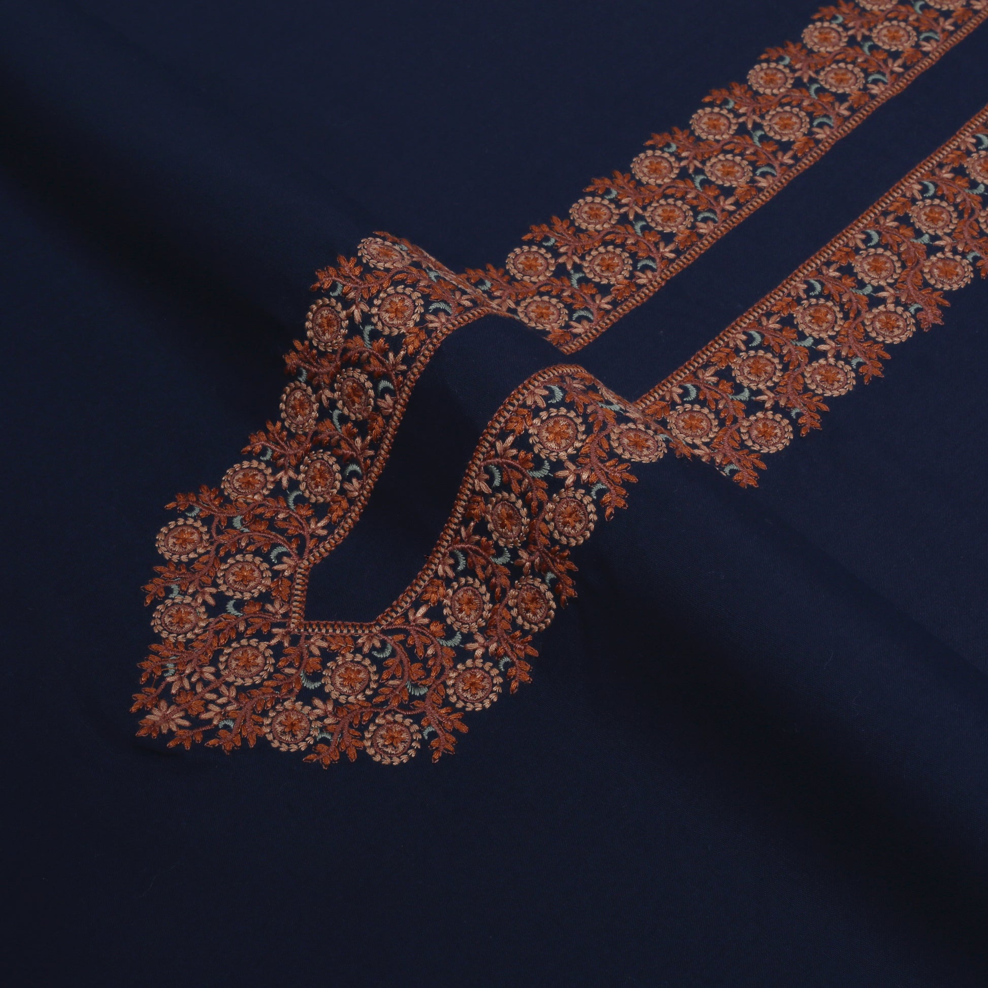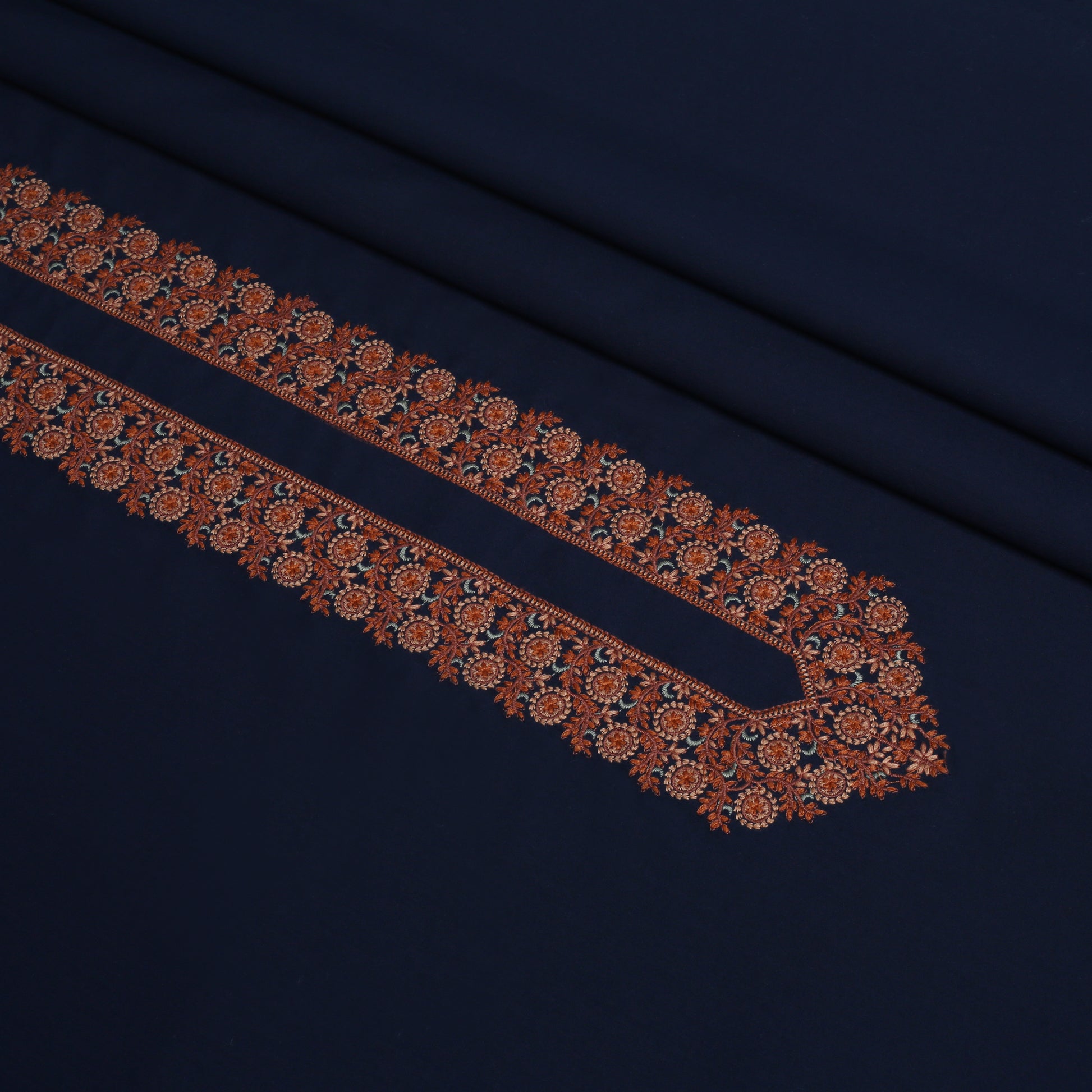 Product Category: Men’s Kashmiri embroidered Wash-N-Wear fabric, unstitched kameez shalwar with cotton thread contrast colors and TAQWAA’s signature pattern embroidery design.