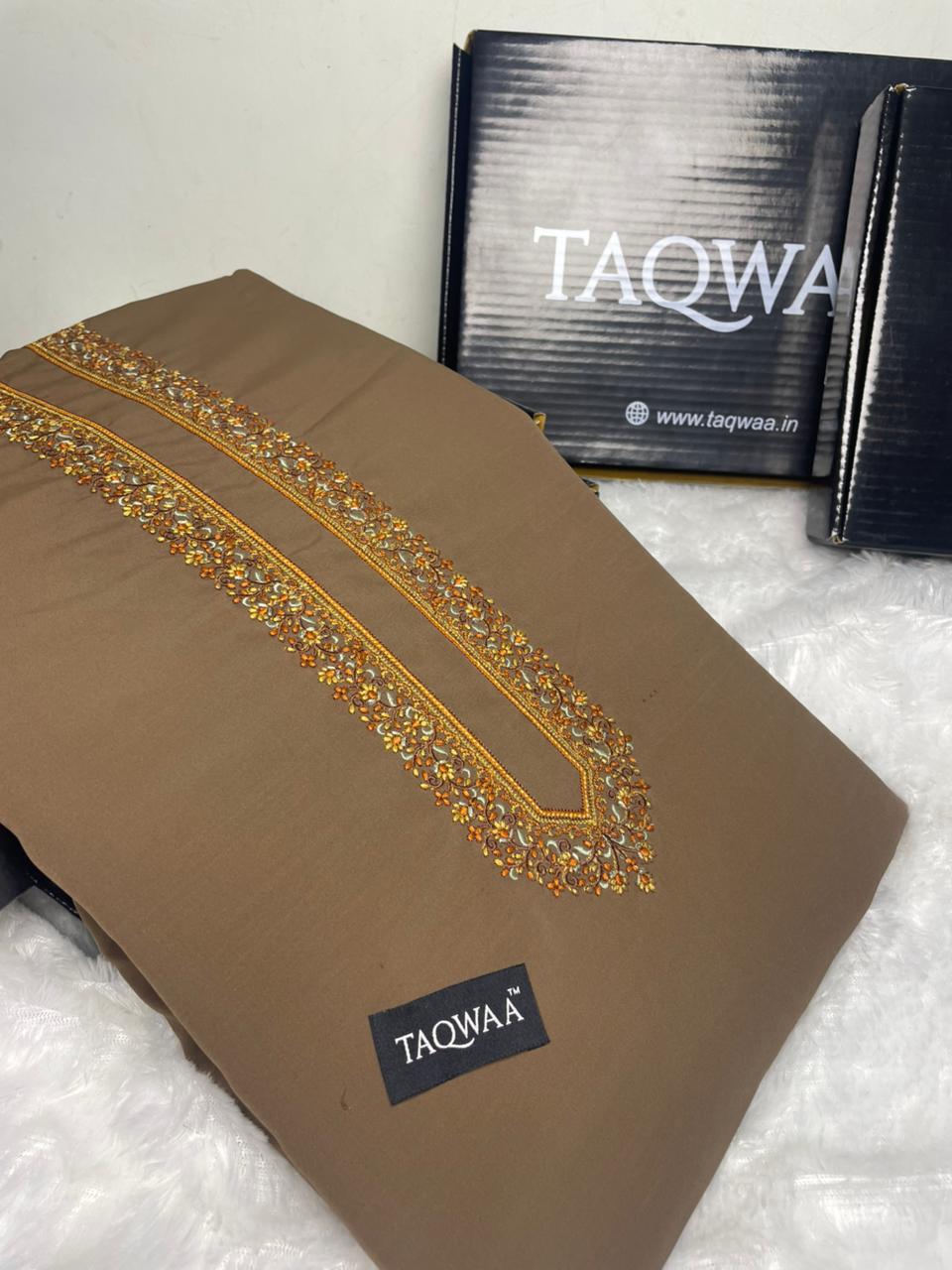 Luxury Wash & Wear Boski Fabric with Soft Finish & Refined Embroidery Work.