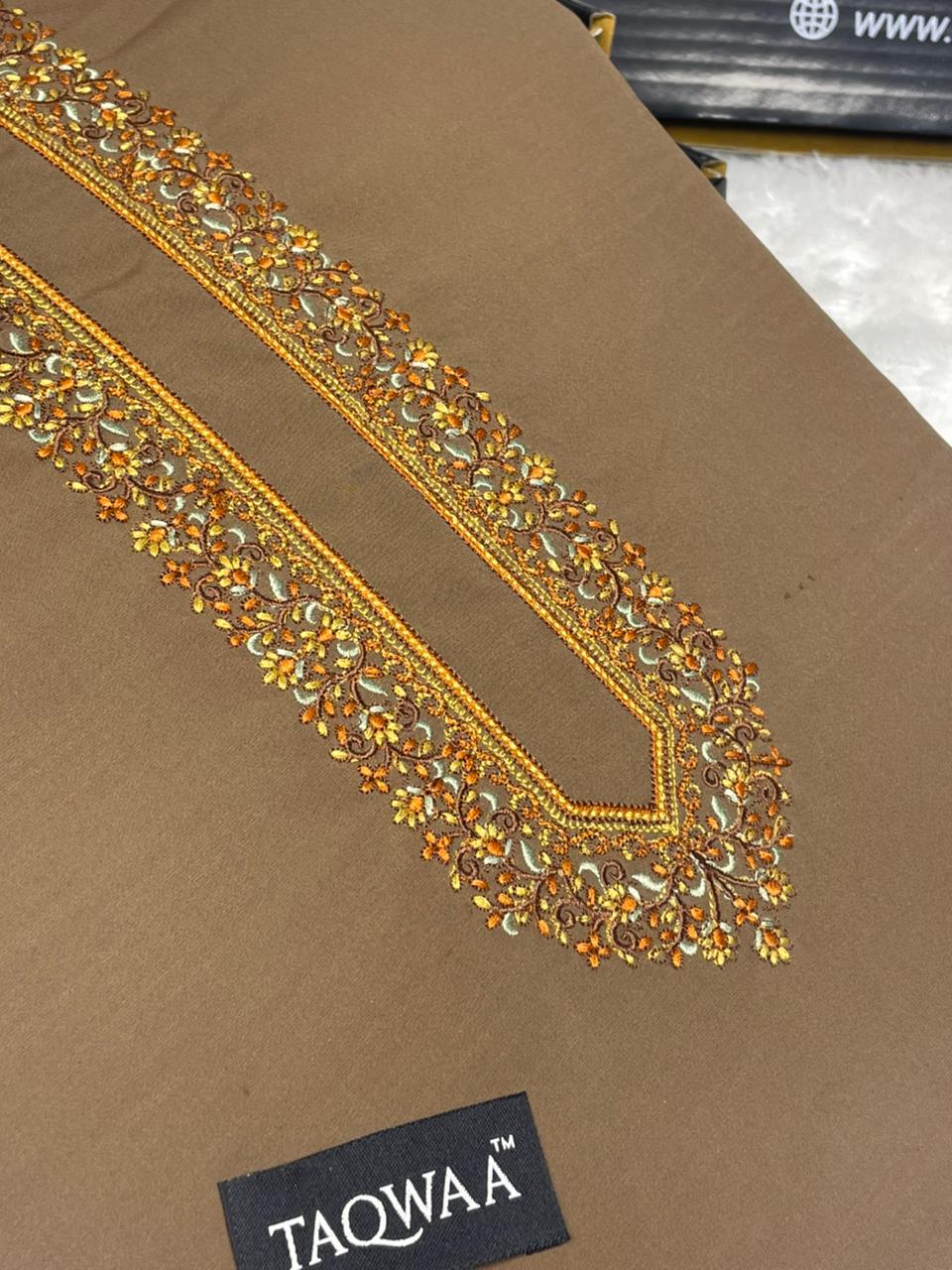 Men Sultan Embroidered Unstitched Kameez Shalwar Fabric with Elegant Thread Embroidery inspired by Royal Patterns.