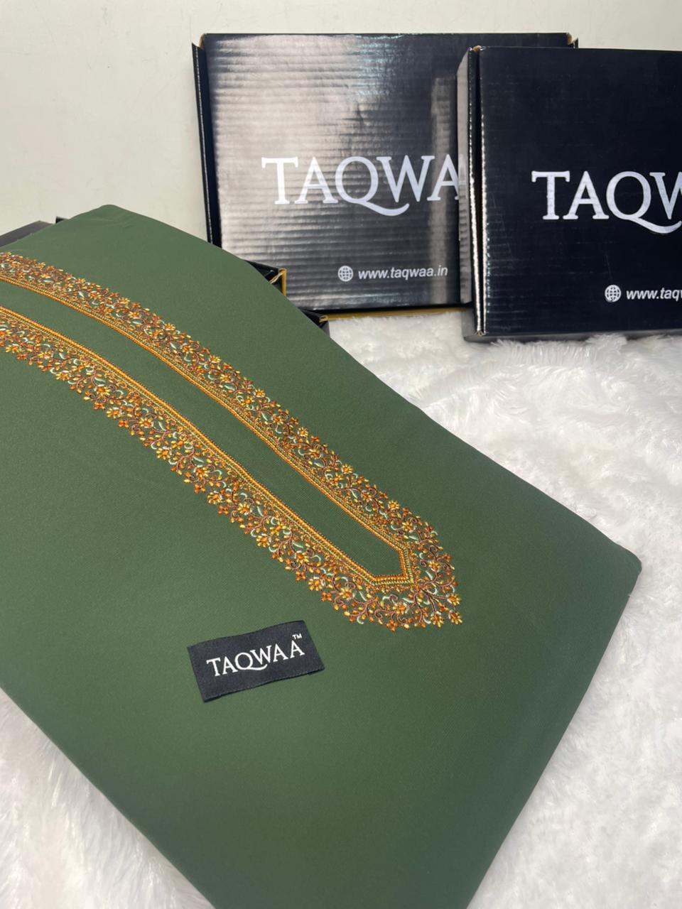 Men Sultan Embroidered – Wash & Wear Boski – Unstitched Fabric – Dark Green