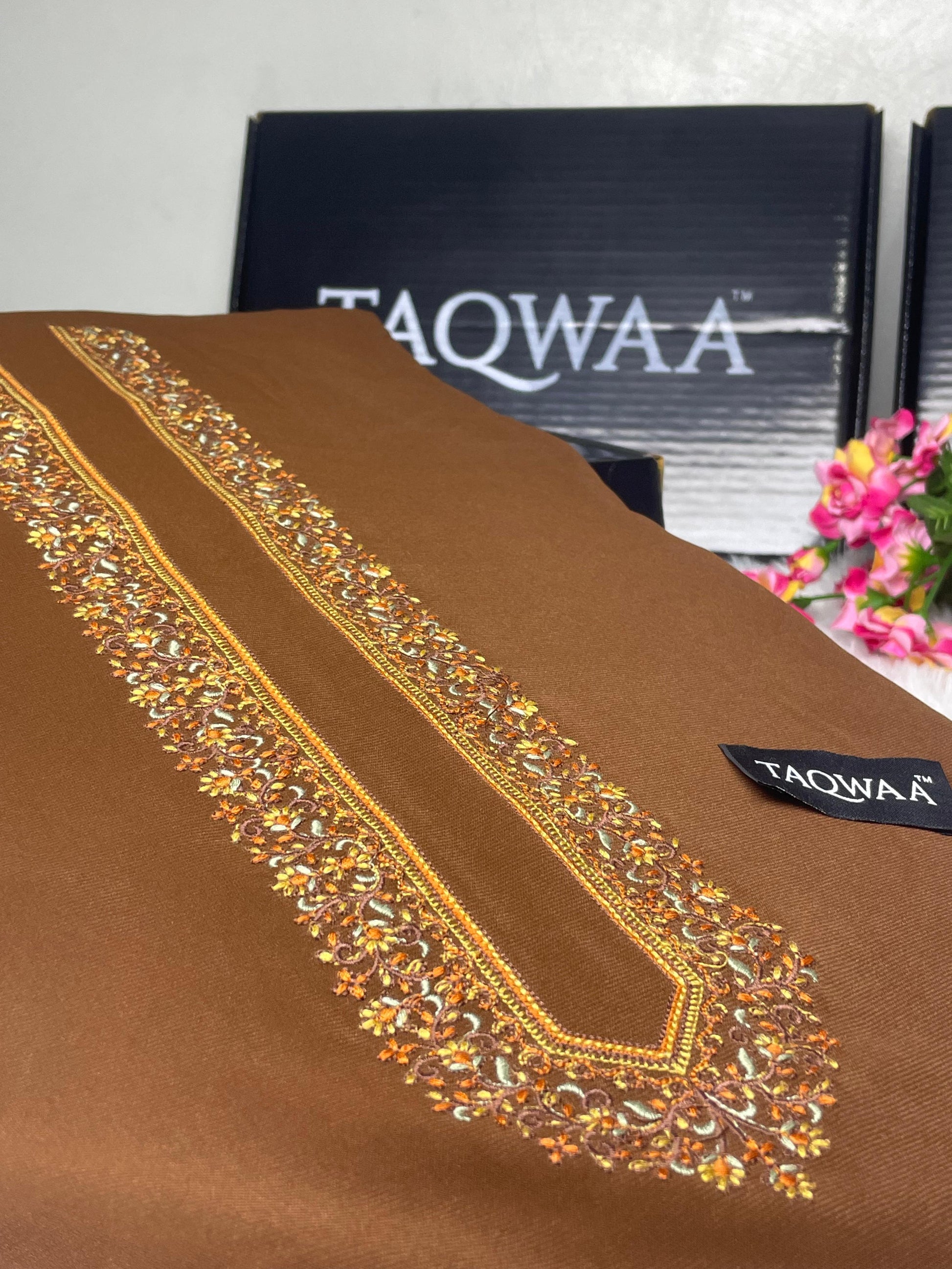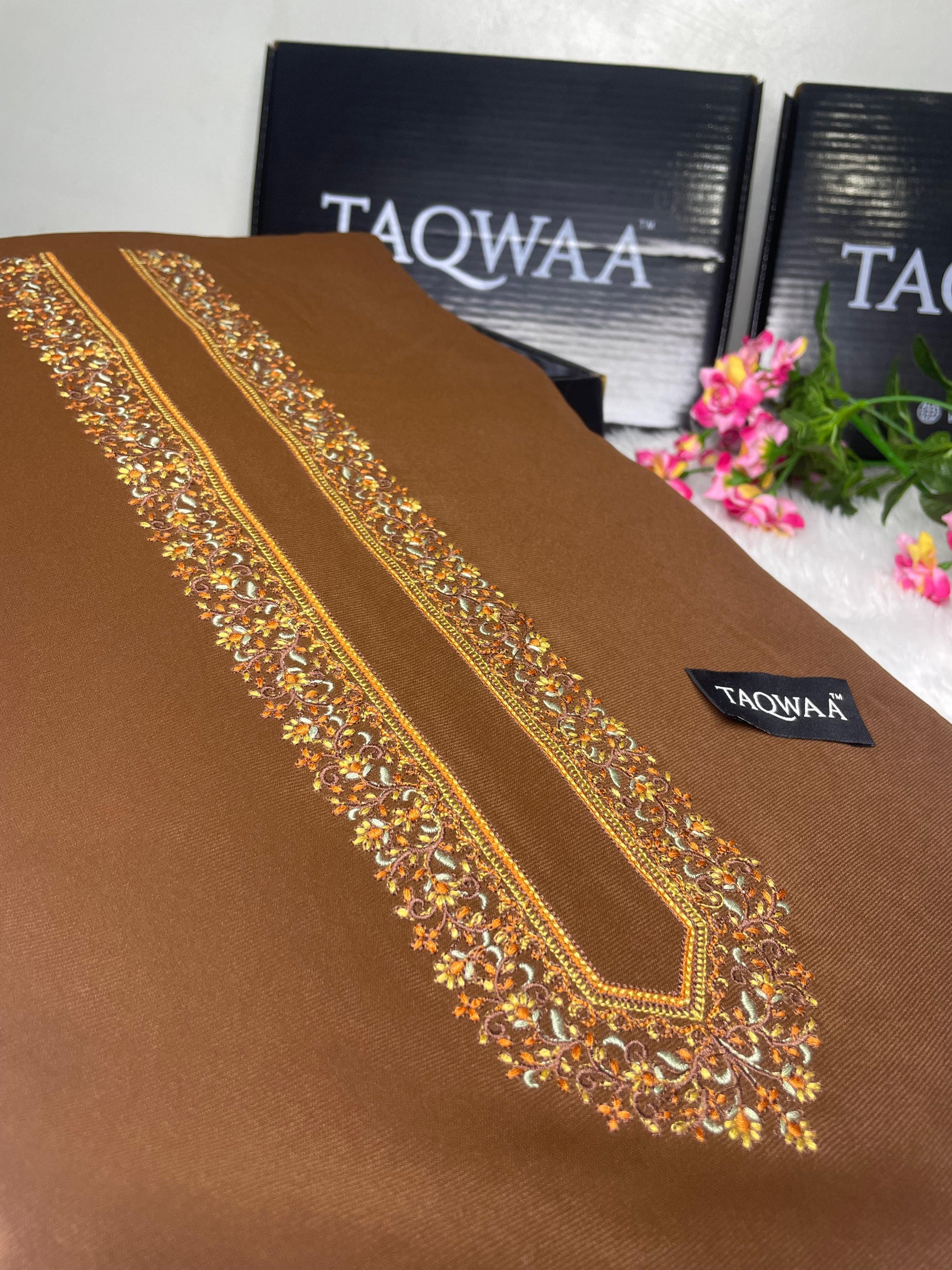 Luxury Wash & Wear Boski Fabric with Soft Finish & Refined Embroidery Work.