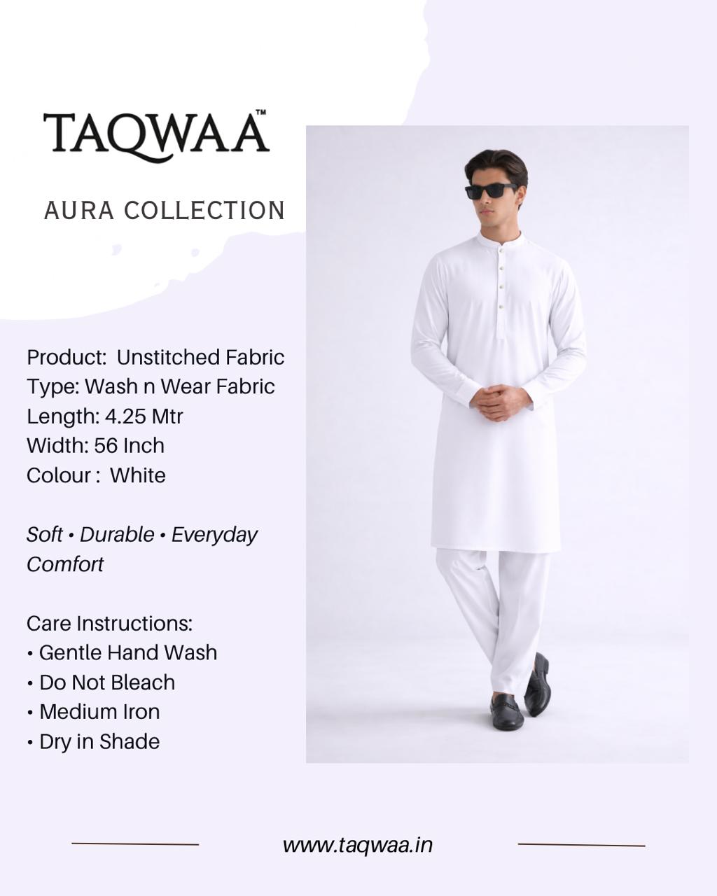 Pure Luxe White – Unstitched Wash N Wear Fabric by TAQWAA (4.25 Meters)