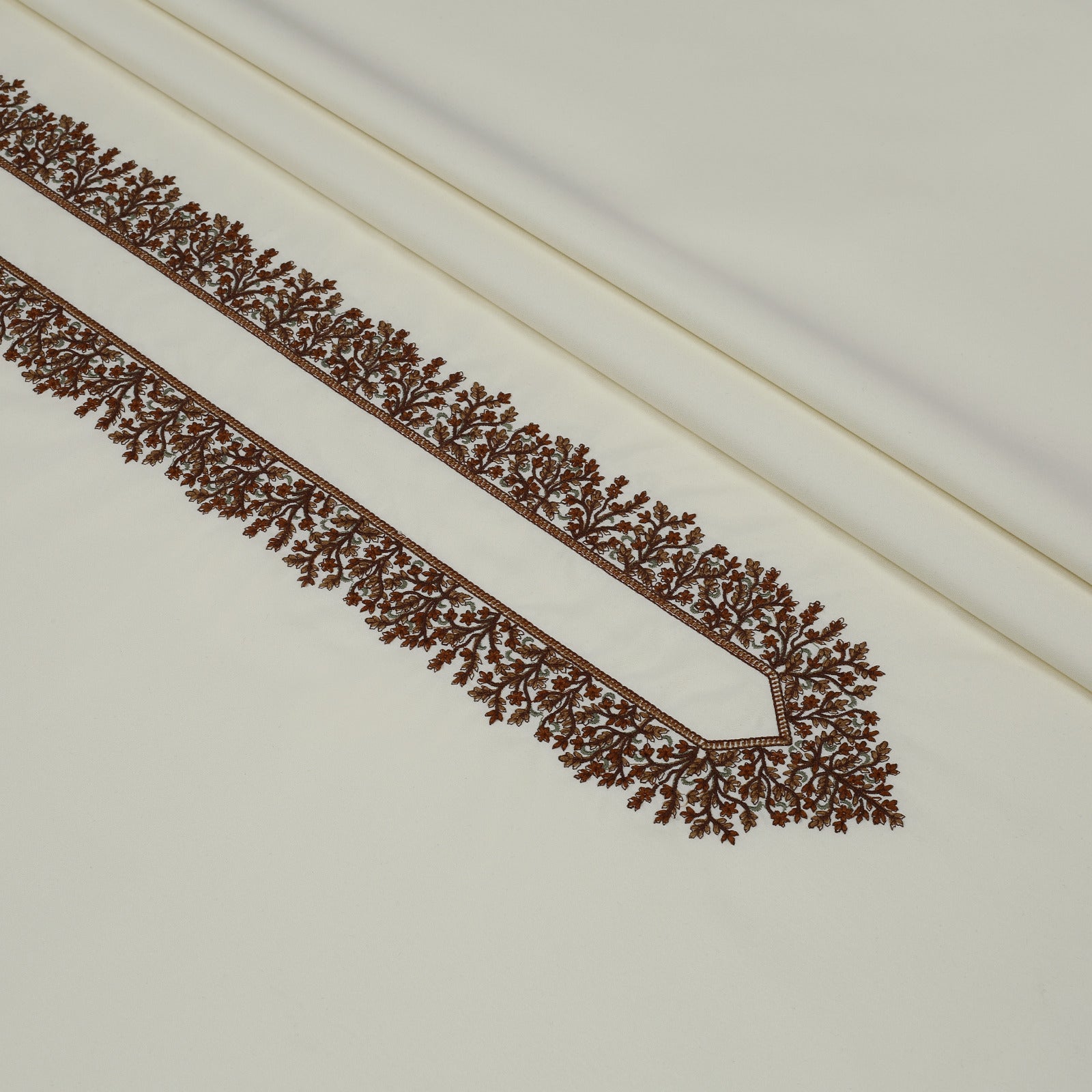 TAQWAA Men Kashmiri Embroidered Wash-N-Wear Fabric – Cream